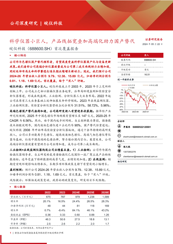 【西部证券】【20240522】皖仪科技(688600)首次覆盖报告:科学仪器小巨人,产品线拓宽叠加高端化助力国产替代-26页