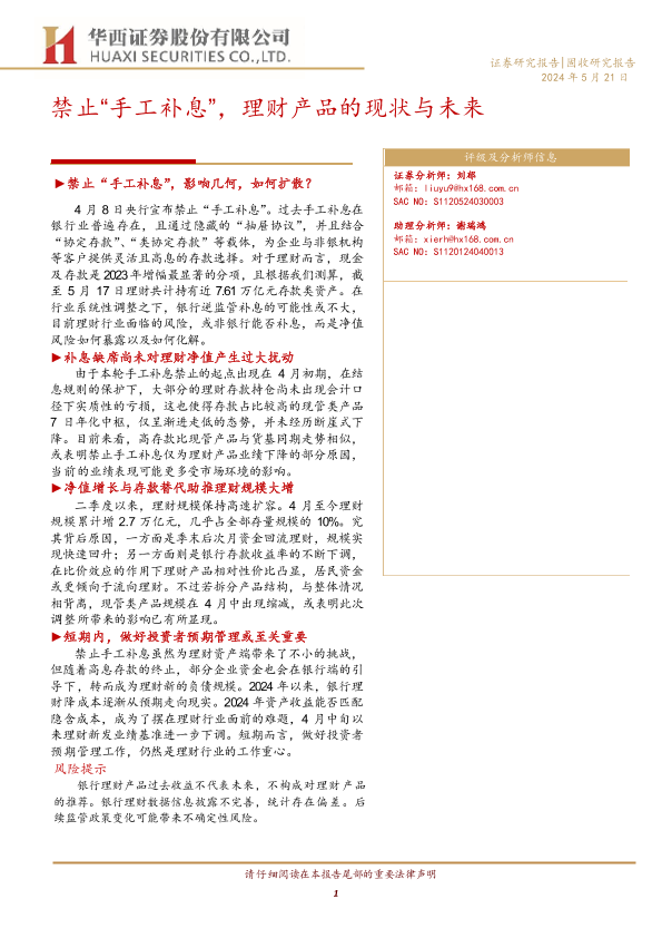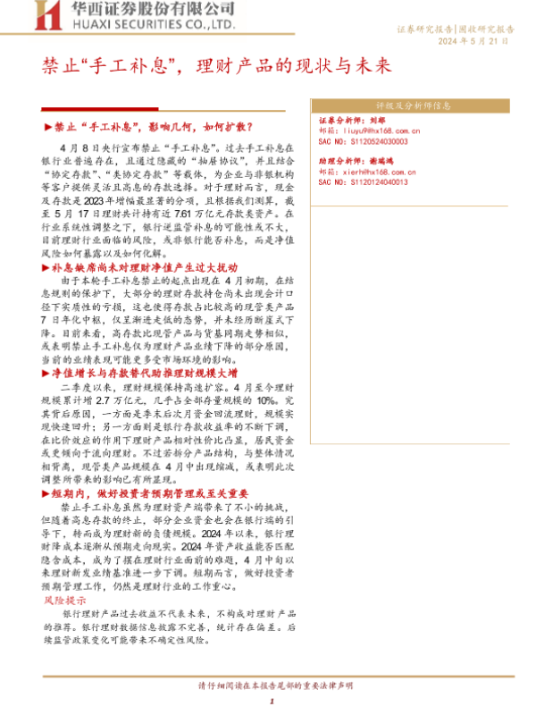 【华西证券】【20240521】禁止“手工补息”+, 理财产品的现状与未来-20页