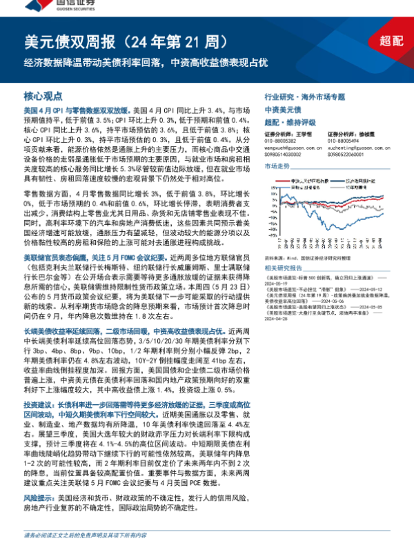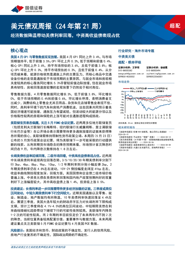 【国信证券】【20240521】美元债:经济数据降温带动美债利率回落,中资高收益债表现占优-14页