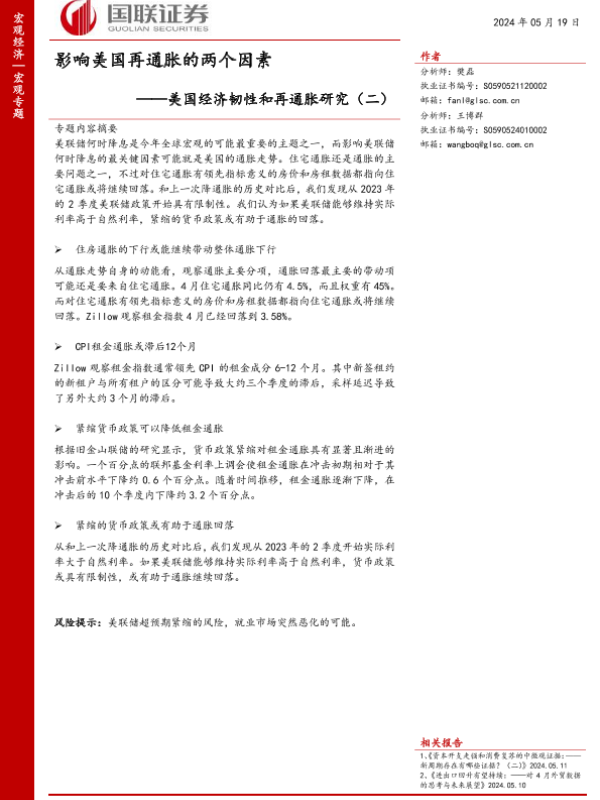 【国联证券】【20240519】美国经济韧性和再通胀研究(二):影响美国再通胀的两个因素-17页
