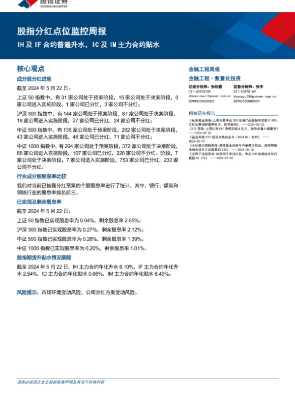 【国信证券】【20240522】股指分红点位监控:IH及IF合约普遍升水,IC及IM主力合约贴水-16页