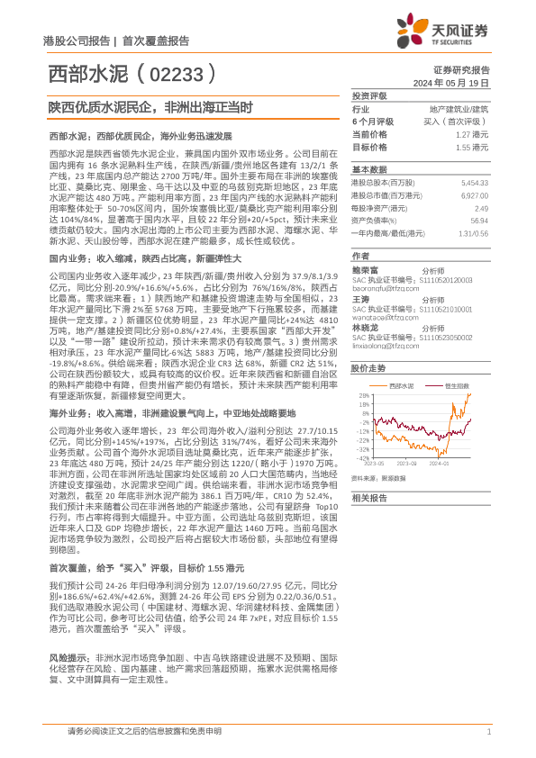 【天风证券】【20240519】西部水泥(02233.HK)陕西优质水泥民企,非洲出海正当时-23页