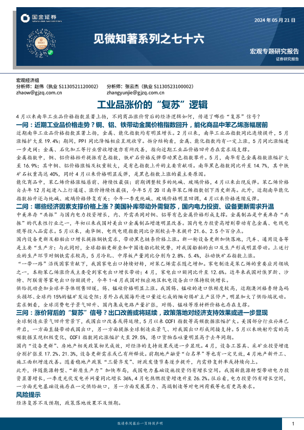 【国金证券】【20240521】见微知著系列之七十六:工业品涨价的“复苏”逻辑-23页