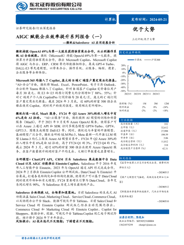 【东北证券】【20240521】计算机行业AIGC赋能企业效率提升系列报告(一):微软&Salesforce AI应用进展分析-37页