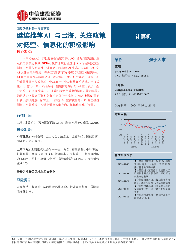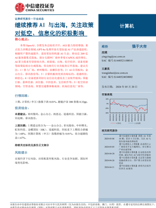 【中信建投证券】【20240520】计算机行业:继续推荐AI与出海,关注政策对低空、信息化的积极影响-10页