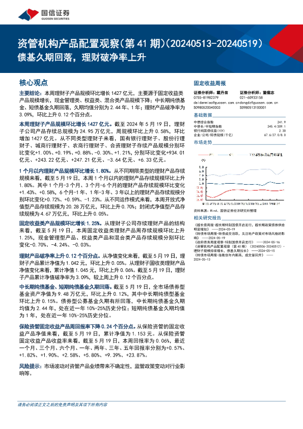 【国信证券】【20240522】资管机构产品配置观察(第41期):债基久期回落,理财破净率上升-16页