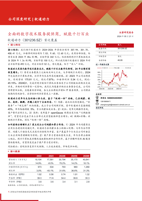 业绩预测 华为生态 数字技术服务 鸿蒙系统 软通动力
