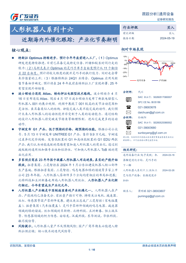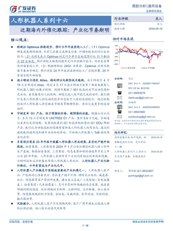 【广发证券】【20240519】通用设备行业人形机器人系列十六-近期海内外催化跟踪:产业化节奏渐明-16页