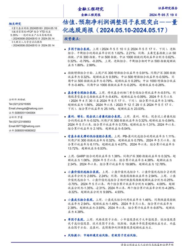 【海通证券】【20240519】估值、预期净利润调整因子表现突出——量化选股周报(2024.05.10-2024.05.17)-13页