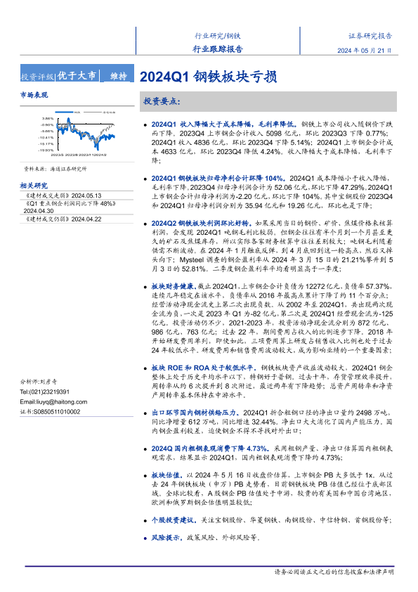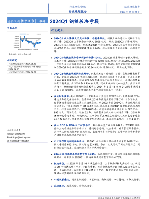 【海通证券】【20240521】钢铁行业跟踪报告:2024Q1钢铁板块亏损-16页