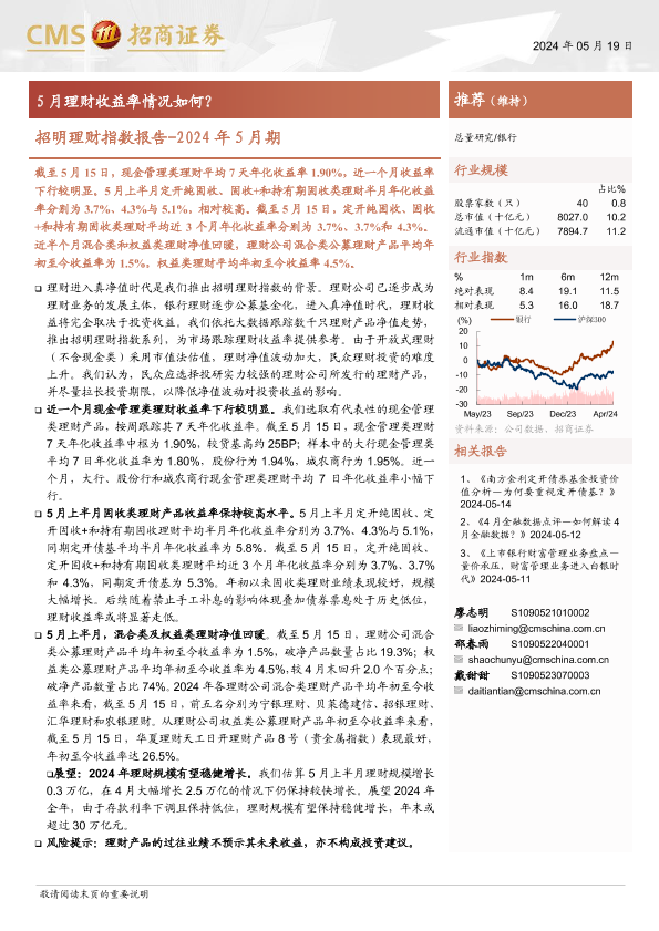 【海通证券】【20240519】银行业招明理财指数报告-2024年5月期:5月理财收益率情况如何?-23页