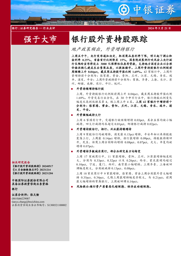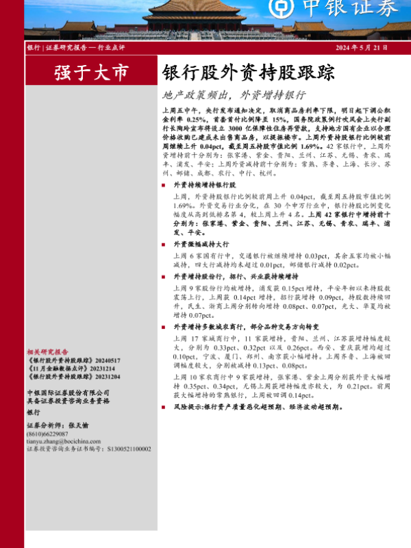 【中银证券】【20240521】银行业股外资持股跟踪:地产政策频出,外资增持银行-13页