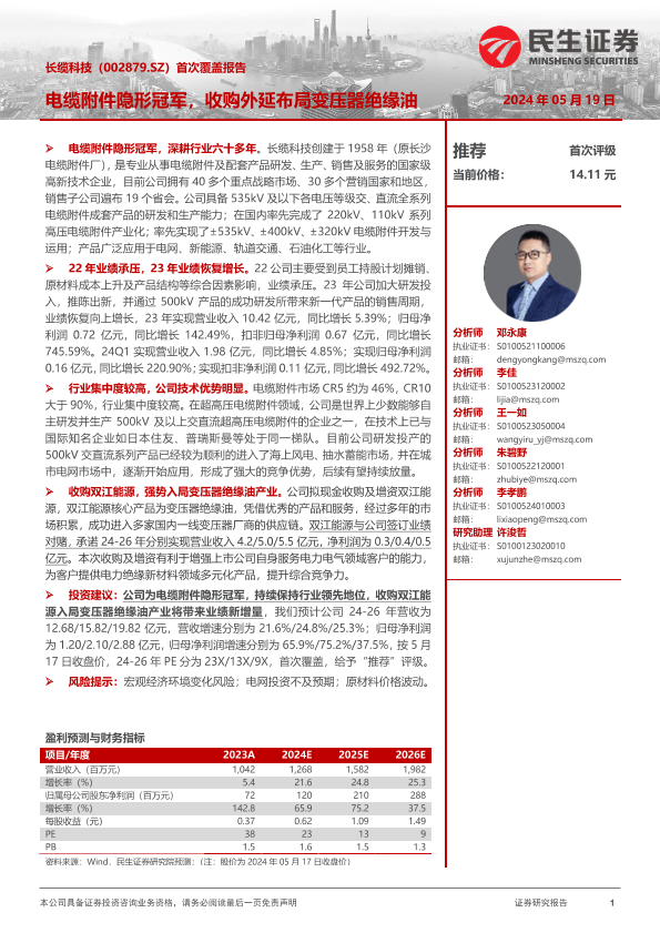 【民生证券】【20240519】长缆科技-电缆附件隐形冠军,收购外延布局变压器绝缘油-17页