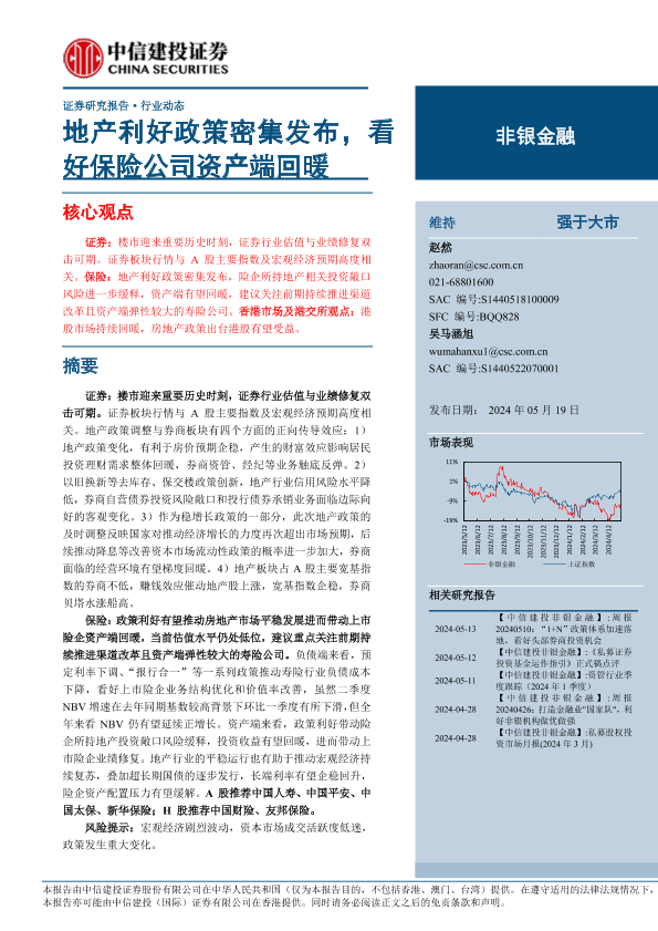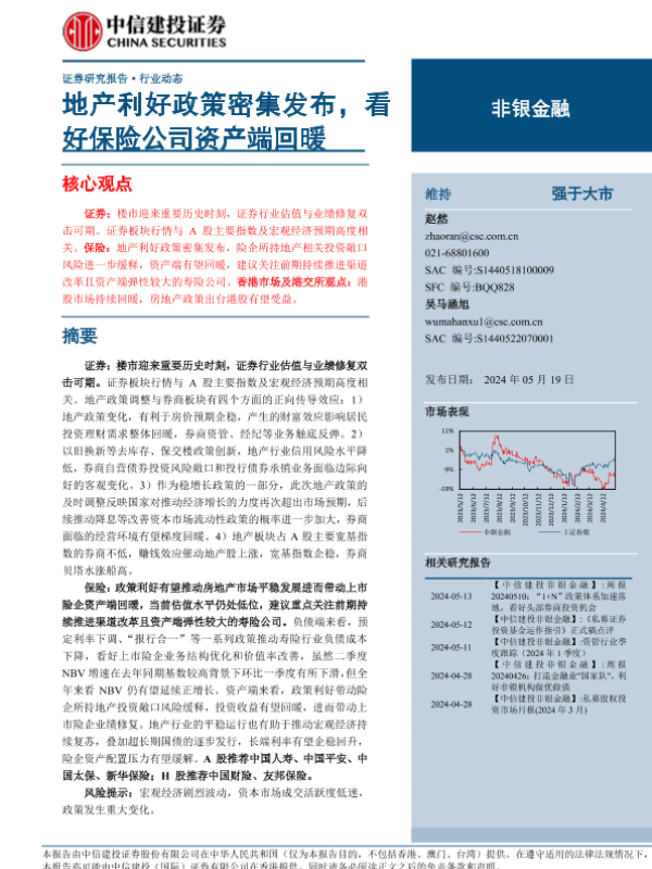 【中信建投证券】【20240519】非银金融行业动态:地产利好政策密集发布,看好保险公司资产端回暖-29页
