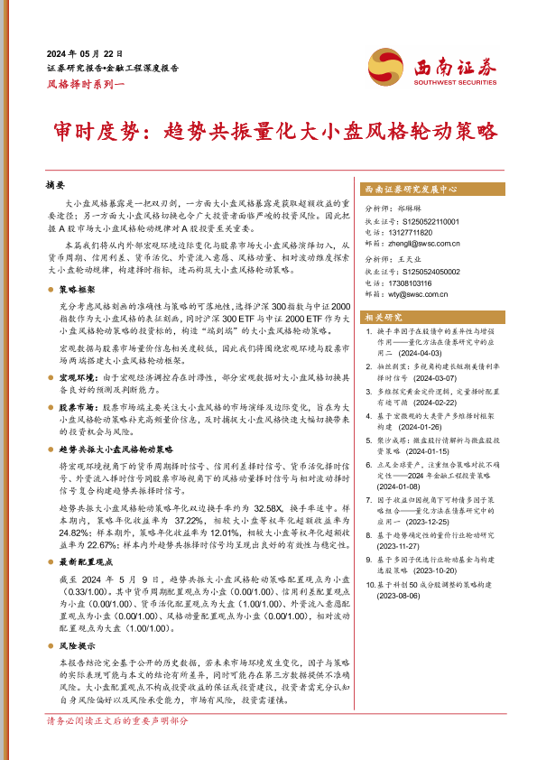 【西南证券】【20240522】风格择时系列一:审时度势,趋势共振量化大小盘风格轮动策略-35页