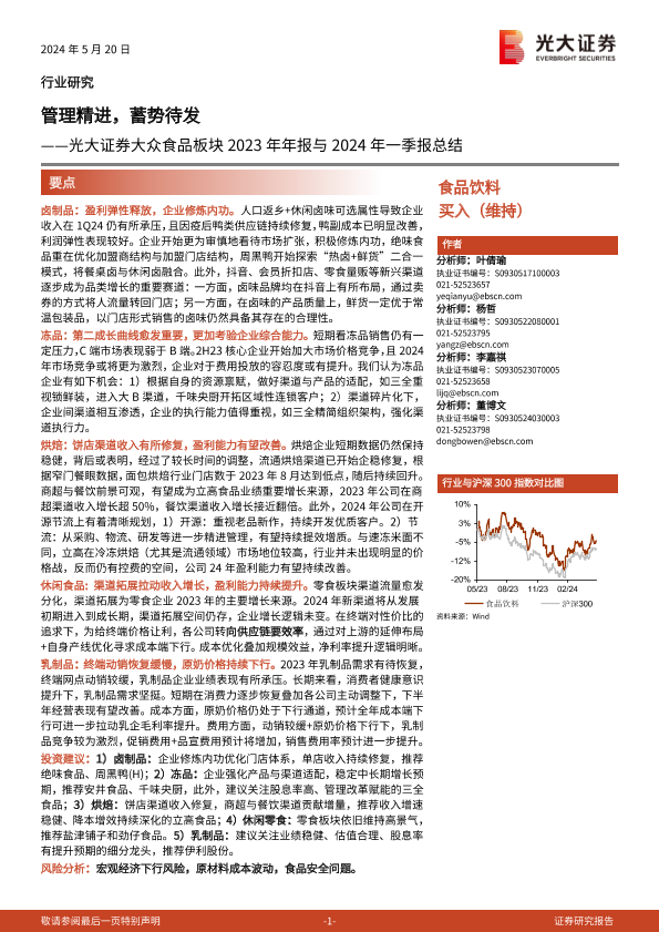 【光大证券】【20240520】食品饮料行业大众食品板块2023年年报与2024年一季报总结:管理精进,蓄势待发-17页
