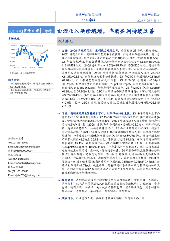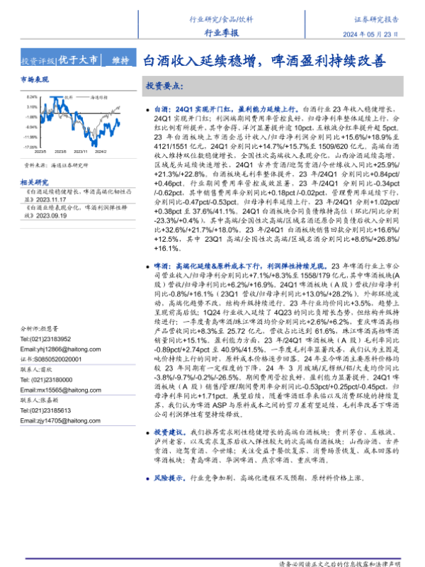 【海通证券】【20240523】饮料行业季报:白酒收入延续稳增,啤酒盈利持续改善-24页