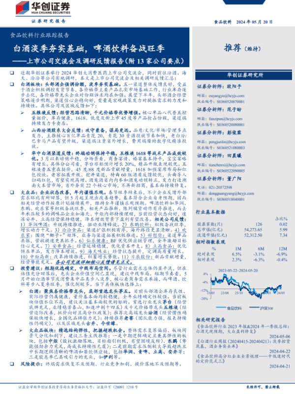 【华创证券】【20240520】食品饮料行业跟踪报告-上市公司交流会及调研反馈报告 白酒淡季夯实基础,啤酒饮料备战旺季-12页