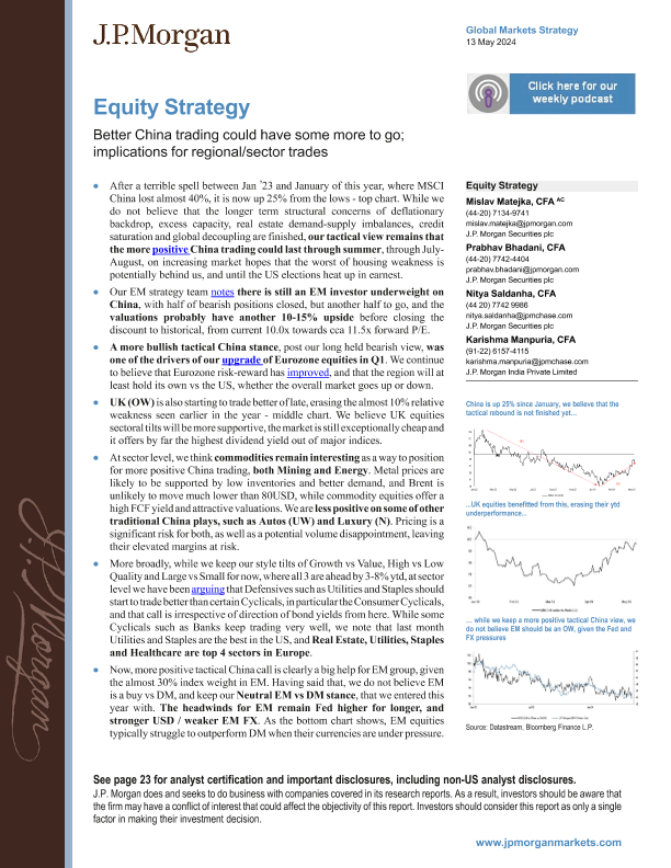 【J.P. Morgan】【20240513】Equity Strategy Better China trading could have some more to go-27页