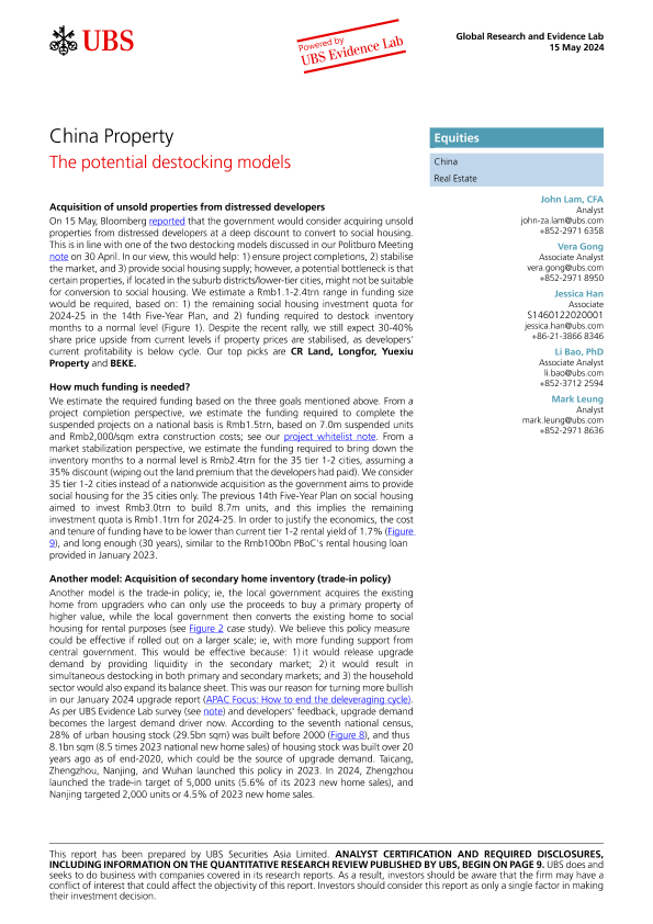 【UBS Securities Asia Limited】【20240515】中国房地产:潜在的库存消化模式-20页
