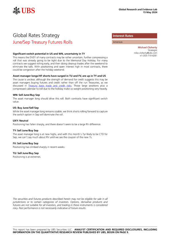 【UBS Securities LLC】【20240515】全球利率策略:六月至九月国债期货转换-12页