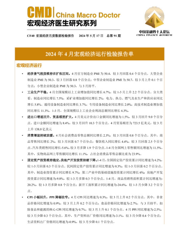 【CF40】【20240517】2024年4月宏观经济运行检验报告单-6页