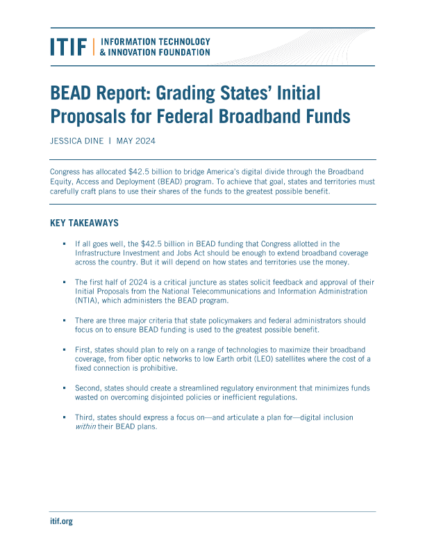 【信息技术和创新基金会 (ITIF)】【202405】BEAD报告:各州联邦宽带资金初步提案的评分-14页