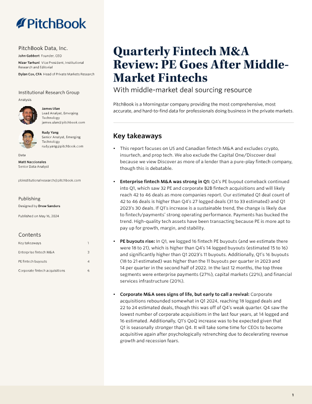 【PitchBook Data】【20240516】季度金融科技并购评论:PE追逐中等市场金融科技-8页