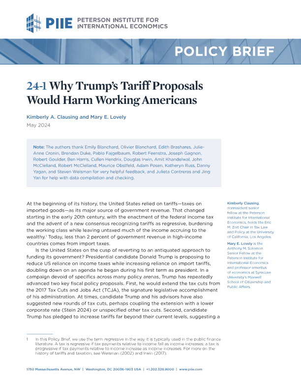 【彼得森经济研究所】【20240501】为什么特朗普的关税提案会伤害美国工薪阶层-25页