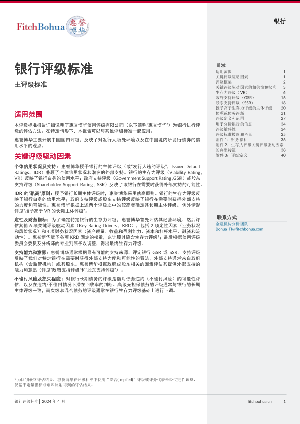 【惠誉博华信用评级有限公司】【20240401】惠誉博华银行评级标准-42页