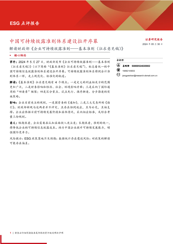【西部证券】【20240530】ESG点评报告:解读财政部《企业可持续披露准则——基本准则(征求意见稿)》,中国可持续披露准则体系建设拉开序幕-10页