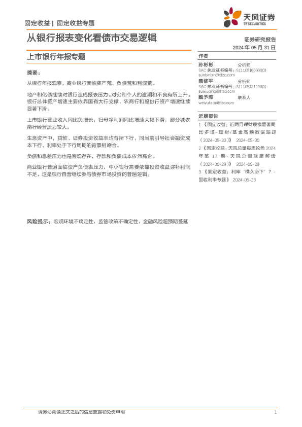 【天风证券】【20240531】上市银行年报专题:从银行报表变化看债市交易逻辑-19页