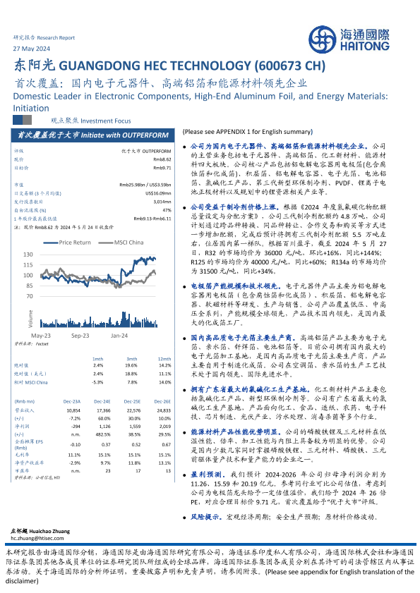 【海通国际】【20240527】东阳光(600673)首次覆盖:国内电子元器件、高端铝箔和能源材料领先企业-13页