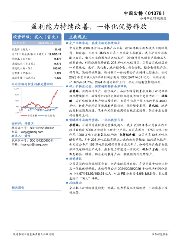 【华安证券】【20240524】中国宏桥盈利能力持续改善,一体化优势释放-15页