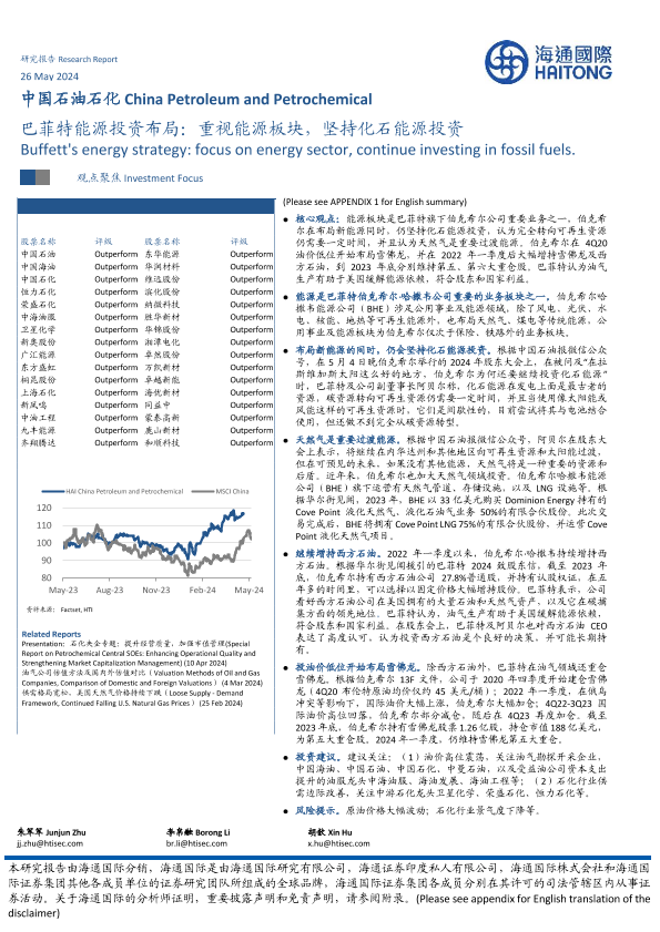 【海通国际】【20240526】中国石油石化行业:巴菲特能源投资布局,重视能源板块,坚持化石能源投资-11页