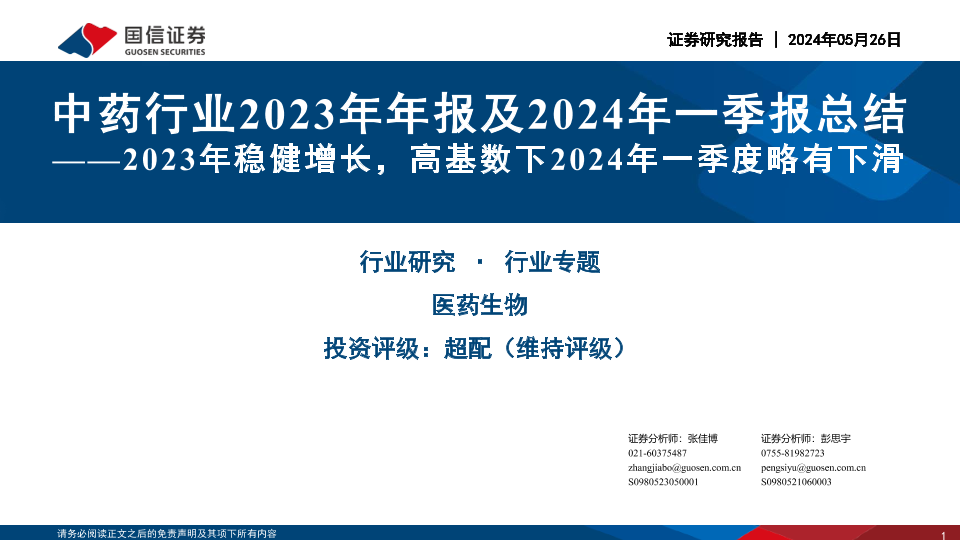 【国信证券】【20240526】中药行业2023年年报及2024年一季报总结-14页