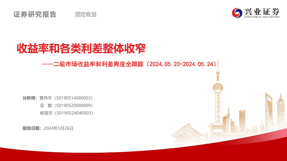 【兴业证券】【20240526】二级市场收益率和利差全跟踪:收益率和各类利差整体收窄-49页