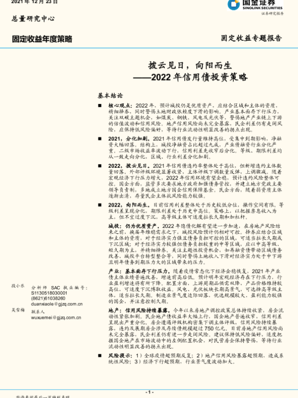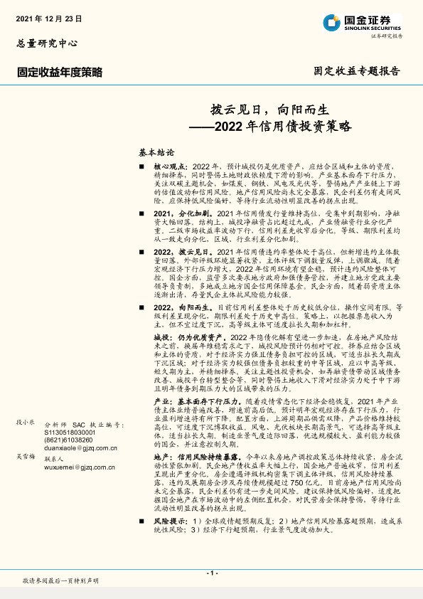 【国金证券】【20211223】2022年信用债投资策略:拨云见日,向阳而生-23页