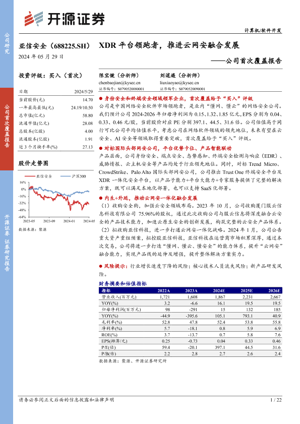 【开源证券】【20240529】亚信安全(688225)公司首次覆盖报告:XDR平台领跑者,推进云网安融合发展-22页