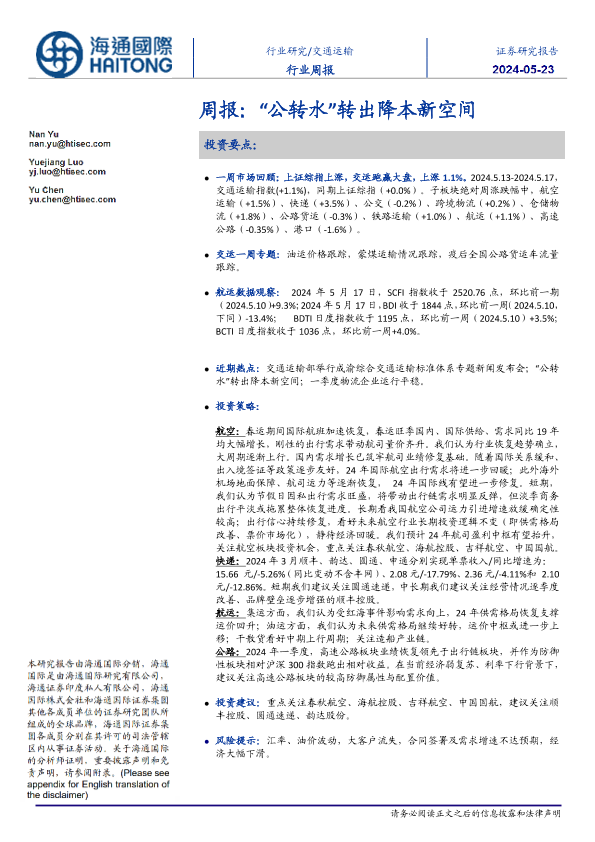 【海通国际】【20240523】交通运输行业:“公转水”转出降本新空间-18页