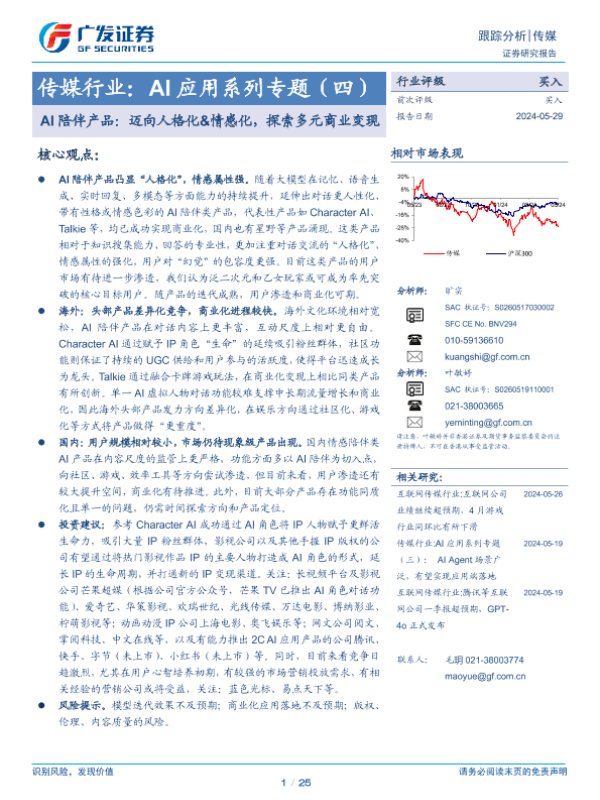 【广发证券】【20240529】传媒行业:AI应用系列专题(四),AI陪伴产品:迈向人格化&情感化,探索多元商业变现-25页