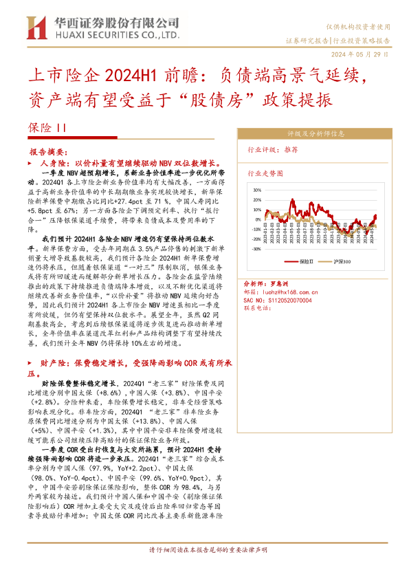 【华西证券】【20240529】保险行业上市险企2024H1前瞻:负债端高景气延续,资产端有望受益于“股债房”政策提振-10页