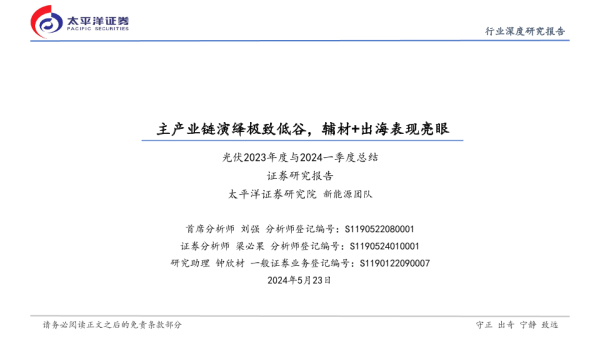【太平洋证券】【20240523】光伏行业2023年度与2024一季度总结:主产业链演绎极致低谷,辅材+出海表现亮眼-26页