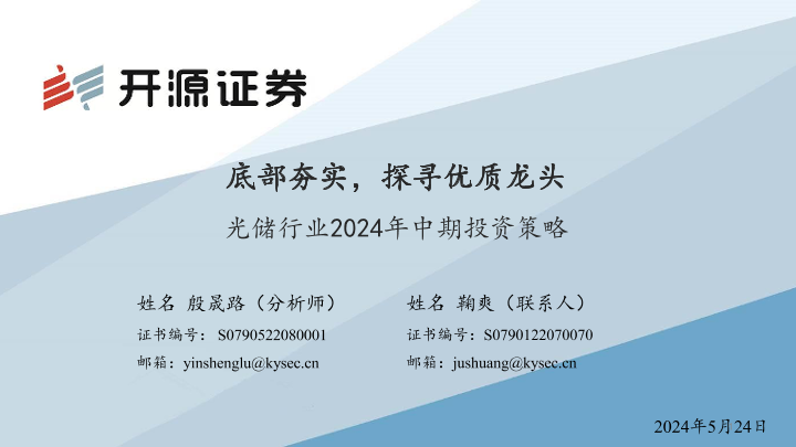 【开源证券】【20240524】光储行业2024年中期投资策略:底部夯实,探寻优质龙头-46页