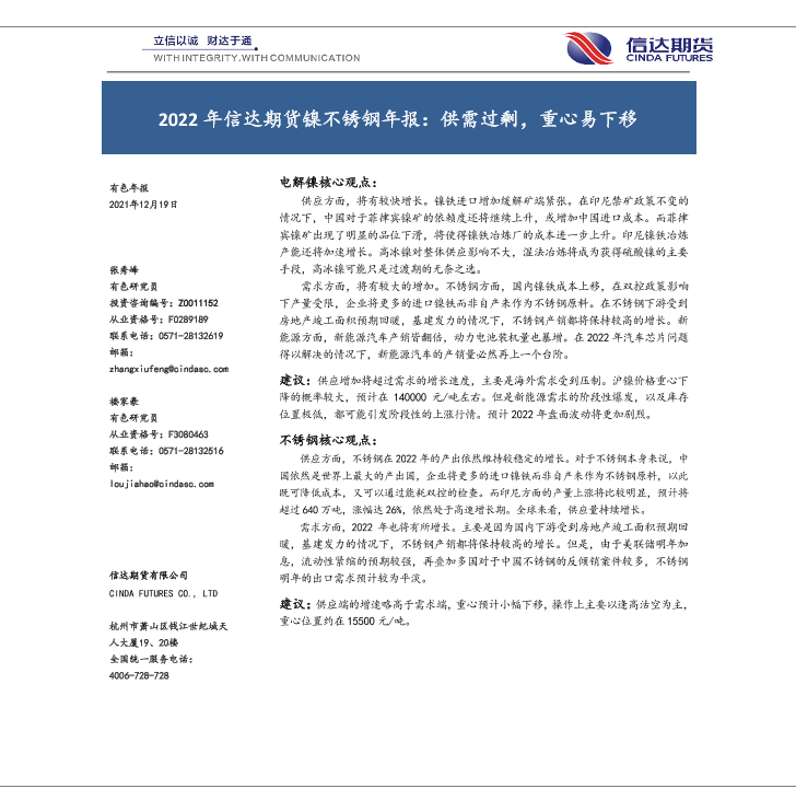 【信达期货】【20211219】2022年信达期货镍不锈钢年报:供需过剩,重心易下移-17页