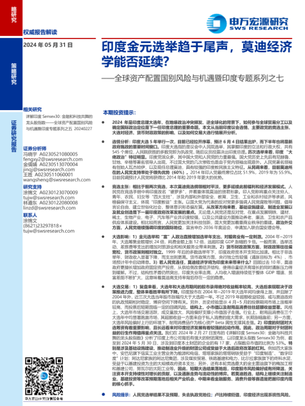【申万宏源】【20240531】全球资产配置国别风险与机遇暨印度专题系列之七:印度金元选举趋于尾声,莫迪经济学能否延续?-31页
