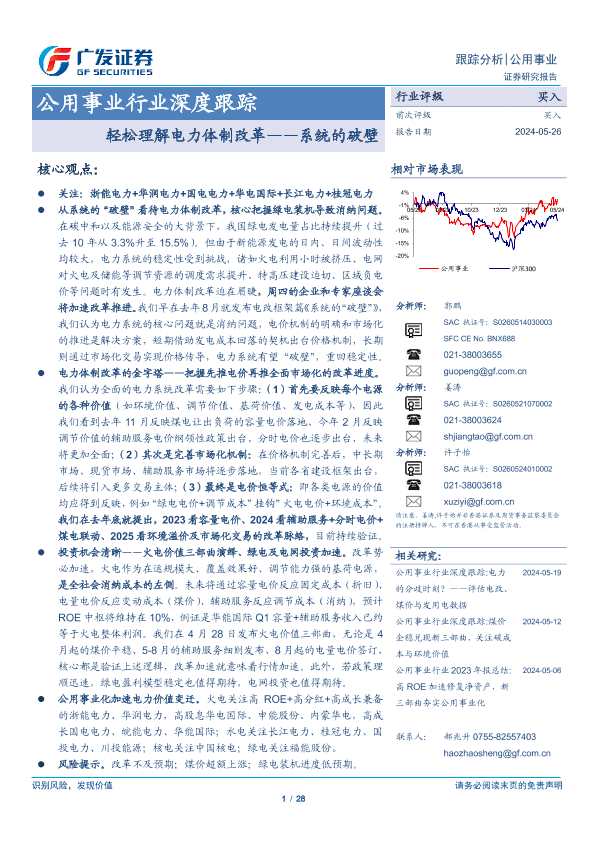 【广发证券】【20240526】公用事业行业深度跟踪:轻松理解电力体制改革——系统的破壁-28页