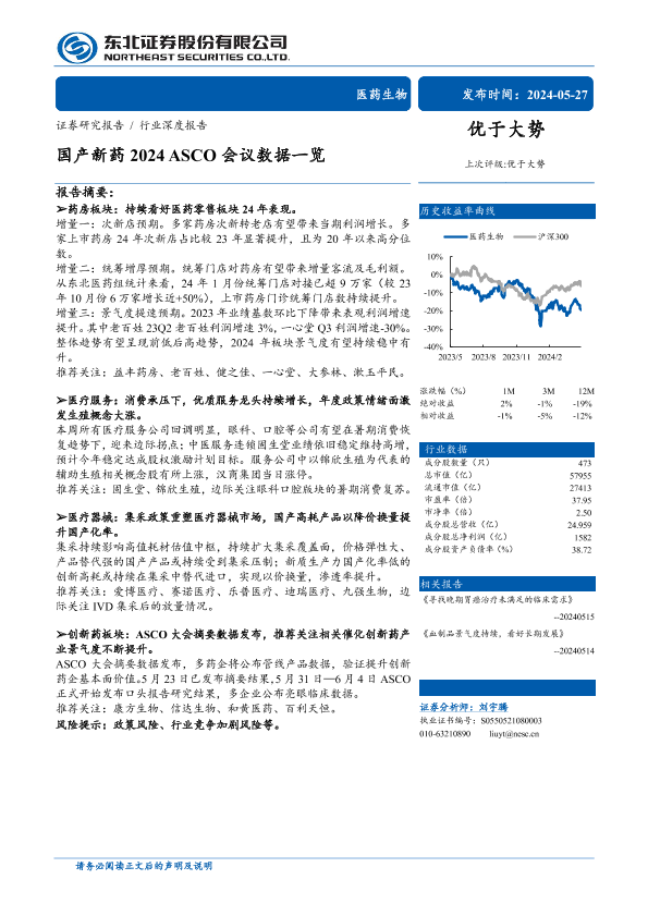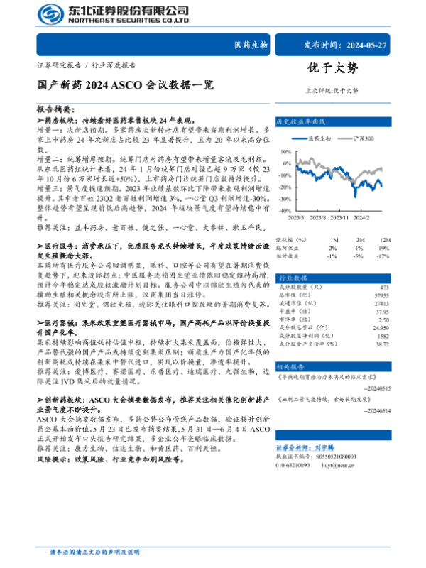【东北证券】【20240527】医药生物行业深度报告:国产新药2024+ASCO会议数据一览-29页