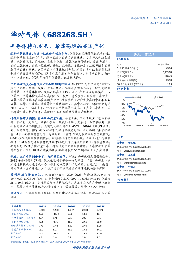 【国盛证券】【20240528】华特气体-688268.SH-半导体特气龙头,聚焦高端品类国产化-35页