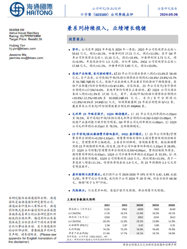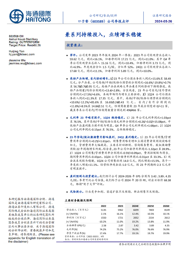 【海通国际】【20240526】口子窖(603589)兼系列持续投入,业绩增长稳健-11页